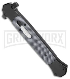 An impressive interpretation of the classic swinguard from A.G.A. Campolin. This knife measures 13 inches when opened and has a stylized swinguard. This knife features a polished bayonet stainless steel blade and a brass firing button. The rich ebony wood handles are offset with brass pins over brass liners. The blade has fast, smooth action in spite of its size. The unique swinguard design gives the knife an almost medieval look. This is a must have for any serious Italian knife collector.
