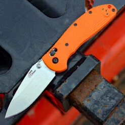 The Boker Plus Falcon 2.0 Out-The-Front automatic, designed by Raimund Lhotak, fits excellently in the hand thanks to the structuring of the titanium-coated handle and the ergonomic design. The reliable mechanism opens and closes the blade by spring force via the release slide, ensuring quick operation. The stunning dynamic grind lines with an uncoated recurve blade make the knife an exquisite collectible.